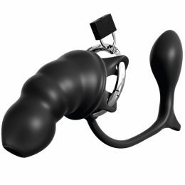 Den pikanta penisburen är mjuk och vattentät med hål i toppen, vilket gör den perfekt för långvariga lekar, där din avhållsamhet verklingen ska testas. Bakringen i stål ser till att du får en stabil passform, samt garanterar att din virila lem hålls under strikt kontroll.