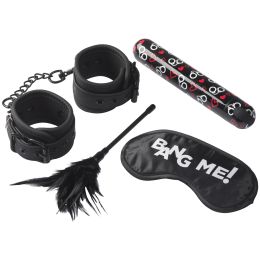 Bondage kitet från Bang! har allt du behöver för att dyka ner i den spännande världen med lätt bondage och sensorisk lek. Bär ögonbindeln "Bang Me!" för att skicka ett sexigt meddelande till din älskling. Det fyrdelade setet ger massor av kinky inspiration.