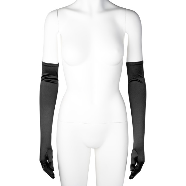 baseks Långa Svarta Satinhandskar Produktbild i hand 50