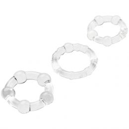 Penisringarna är flexibla och töjbara och därmed passar de till de allra flesta. Kulorna längs med ringarna och det genomskinliga materialet ger extra stimulans och ett fräckt utseende.