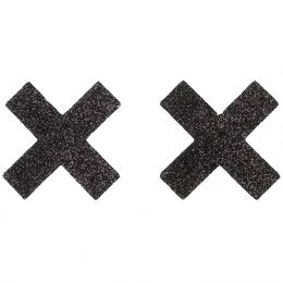 De fräcka, svarta kryssen är självhäftande och lätta att sätta över dina bröstvårtor, där de ger ett extra fräckt och pikant uttryck.