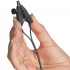 Klämman har en justeringsskruv som gör att du kan begränsa greppkraften, perfekt när du vill ansluta den till dina mer känsliga delar. Det enda klämman är ansluten till en 1,45 meter lång kabel med en 3,5 mm Jack-plugg, som är lämplig för anslutning till någon av E-Stim-kontrollboxarna.
