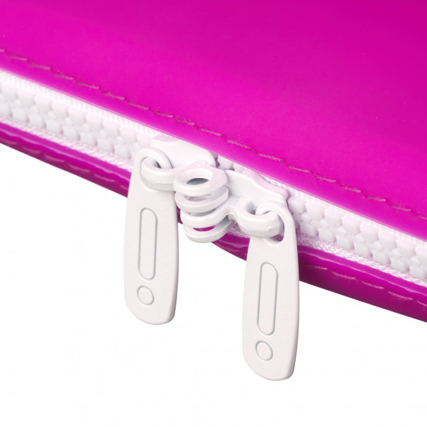 Den här rosa påsen är hur enkel som helst. Den har ett stort fack och stängs med en robust dragkedja som har hål för ett hänglås (ingår ej) för fullständig avskildhet.