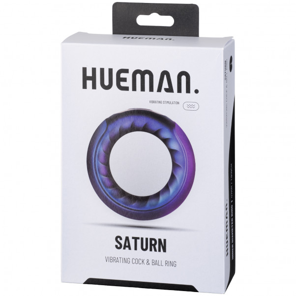 Få galaktisk tillfredsställelse för både dig och din partner med denna lockande, iriserande lila Saturn penis- och testikelring från Hueman.
