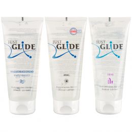 Just Glide setet innehåller 3 vattenbaserade glidmedel med extra långvarig glidförmåga, så att dina erotiska äventyr blir så våta och levande som det bara är möjligt.