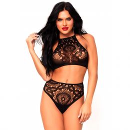 Detta förföriska set från Leg Avenue är framställd i ett vackert spetsmönster och uppiffat med sexiga snörningsdetaljer. Klä dig i detta och känn dig sensuell och sexig som aldrig förr.