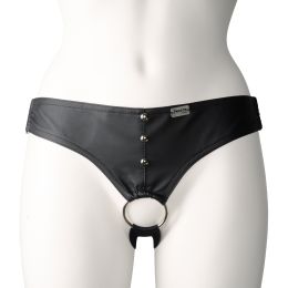 Knappar och spännen i silver håller konstlädersuspensoaren på plats runt dina höfter och ger den ett erotiskt utseende. Ringen i fronten kramar om din penis och låter den hänga fritt, så både den och din bara rumpa kan bli beundrade.