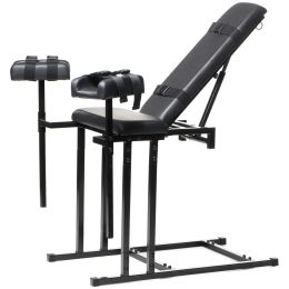 Låt bekvämligheten vara ett hjälpmedel i era kinky lekar med den här justerbara stolen. Positionera din partner i din favoritställning genom att ändra inställning på ryggstödet eller placera deras ben som du vill ha dem. Använd spännena så det är säkert fastspända och underbart exponerade.