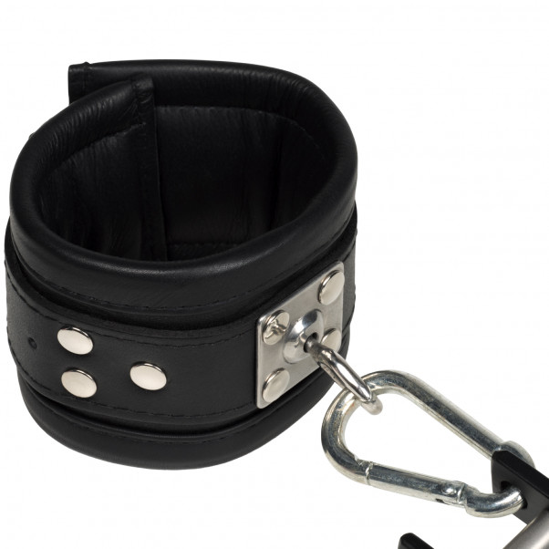 Dina händer är bundna, din penis är fastskruvad och din nyckelhållare har den totala kontrollen. Penis och testiklar placeras mellan de två plattorna i skampålen. Din härskare vrider sedan om tumskruven tills din inre slav ber om nåd. Det robusta halsbandet och manschetterna som är fästa på den ultrastarka stålstången gör att du inte har någon chans att försvara dig själv.