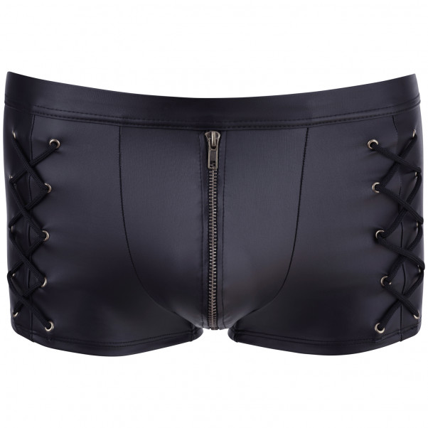 Boxershortsen är mjuka och smidiga vid beröring, och materialet har en liten stretch, så att dina varor lindas in med omsorg. Shortsen är dekorerade med snörning på höfterna, och de har en funktionell dragkedja framtill för en sexig avslöja och enkel åtkomst. Dragkedjan är fodrad med ett skyddande lager för att förhindra att den fastnar.