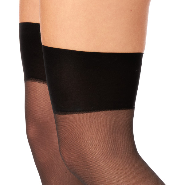 Strumporna är i 20 denier och når till mitt på låret. Använd dem tillsammans med en sexig höfthållare, så kan du vara säker att de sitter kvar där de ska.