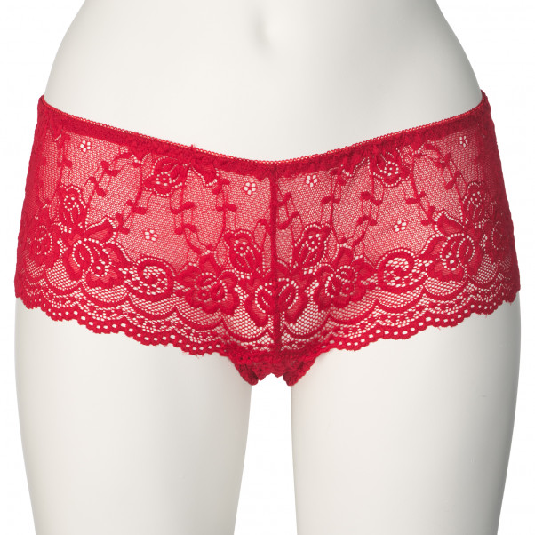 Sätt på dig de perfekta date-night-trosorna från NORTIE. Gunilla hipsters är gjorda av skir röd spets med en design som framhäver din rumpa.