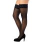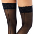 Låt benen glida i de mjuka strumporna och känn hur de tjocka, elastiska spetsdetaljerna får dem att sitta säkert på plats – med eller utan strumpeband. Den blommiga spetsen på fållen kommer att fånga din partners uppmärksamhet och få hen att vilja titta närmare på vad som finns mellan dina ben.