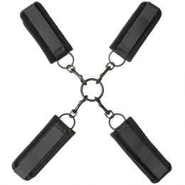 Setet består av två manschetter till handleder, två manschetter till anklar och en ring för fixering. Manschetterna kan fästas i ringen med de inkluderade karbinhakarna.