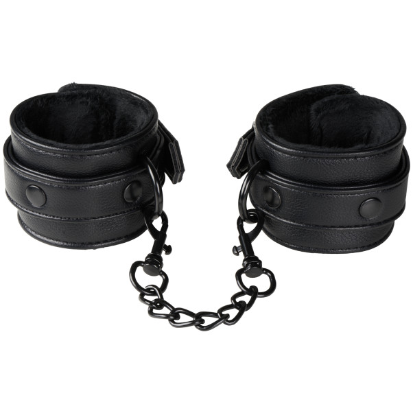 Sätt på din partner handledsmanschetterna och använd spännet för att justera så de passar. Kedja ihop dem framför eller bakom kroppen beroende på vilken lek ni ska leka. Kedjan är avtagbar så de kan också bli fastkedjade i sängen.