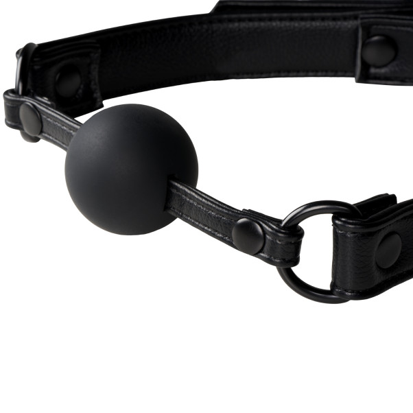 Placera bollen i din partners öppna mun och justera så att den passar med hjälp av spännena. Det mjuka konstlädret känns lent mot huden och ger ett erotiskt uttryck när det sitter tajt runt huvudet.