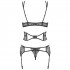 Chocka din partner med en galen sexappeal när du bär Frivolla från Obsessive, ett set i fyra delar som innehåller en bh, höfthållare, spetsbälte och stringtrosa. Det är ett set med remmar som bjuder in din partner att lösa upp dig innan ni båda trasslar in i varandra.