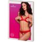 Den röda bh:n är mjukt vadderad för att lägga till en fördel till din famn när de frestar din partner med den retsamma, kuplösa designen. De justerbara remmarna går ihop i en halterneck-design och är vackert dekorerade med söta rosetter som kommer att skapa en lockande kontrast med det annars stygga setet.