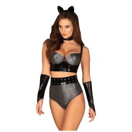 Visa upp din stygga list i denna Obsessive Silveria rävkostym svart och glittrande silver med öron som ger extra krydda till mixen.