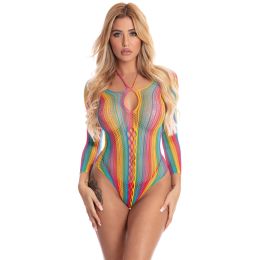 Någonstans över regnbågen låter en färgstråle dig glänsa i denna flerfärgade långärmade bodysuit från Pink Lipstick.
