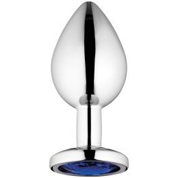 Låt din rumpa lysas av lycka när den fylls av Blue Jewel analplugg från Sinful. Njut av den tillfredställande, medelstora storleken på den här stilrena metallpluggen och dess skinande bas som kommer att kröna ditt hål.