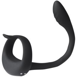 Låt ringen glida ner på penisen och se till att den sitter bra. För in vibratorn i bakdörren så att prostatan blir härligt stimulerad medan den lilla tappen kittlar klitoris.
