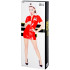 Med kostymen ingår också en vit hatt som fulländar sjuksköterskelooken. På klänningens bröst och på hatten har den svarta kors.