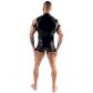 Toppen i matt utseende är åtsittande men stretchig och kombinerar komfort med en fantastisk look. Fäst fram och bak sitter en sele med nitar längs remmarna. Den har också metallringar för att dra din undergivna närmare och kräva deras uppmärksamhet.