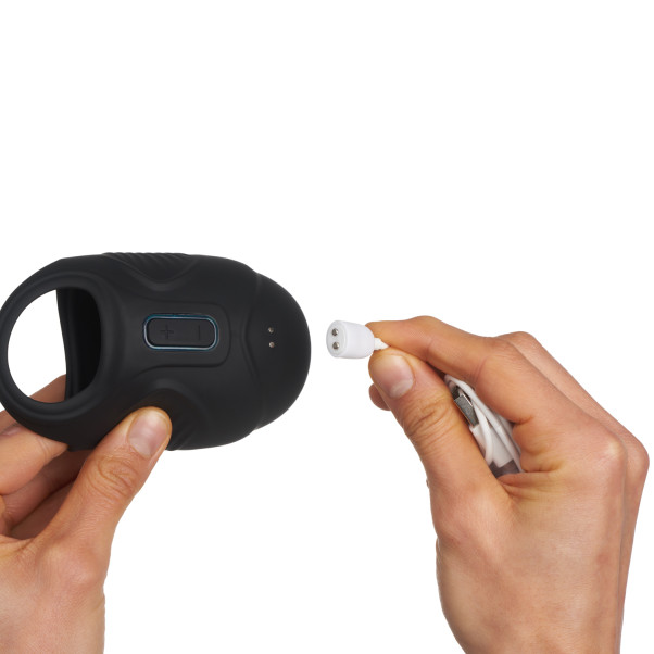 Applicera lite vattenbaserat glidmedel på dina kulor innan du stoppar in dem i den töjbara silikonsäcken. Ringen runt penisen håller den på plats medan du utforskar alla vibrationsmönster och hastigheter.