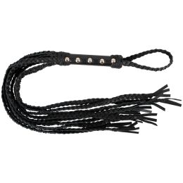 Nybörjare eller med avancerade spankers kommer båda att ha nöje av den långa läderfloggern. Med flätade fransar och ett handtag med silverknappar är floggern ett snyggt BDSM-tillbehör. Redo för både retande smekningar och snärtor som känns.